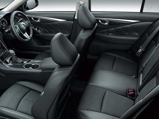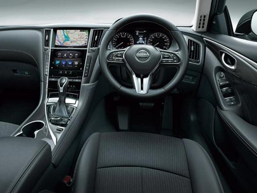 Nissan Skyline Sedan is a super executive urban car designed for the elite class living standard. It is a smart and vibrant sedan car has been recently unveiled with a brand new redesigned sleek shine look. The exterior design has been built with larger LED Front headlights, front fog lights, and front horizontal bar emblem grille. The lower grille, indicator light, power side door mirror, and 19-inches aluminum wheels are also added accessories. The posterior side provides an attractive catchy style display for customers by adding with LED Taillights, rear fog lights, rear bumper, and dual exhaust pipes. It is presently available with captivating and stunning body colors such as brilliant silver, dark metal grey, super black, radiant red, crystal white pearl, garnet black, premium brown, and steel blue.
